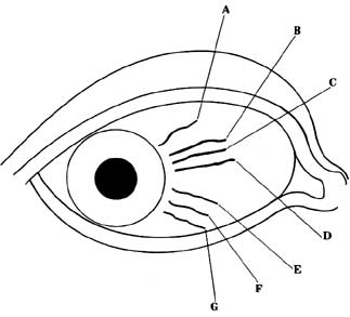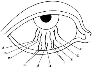 By examining the chart on the opposite page, you will find that the above are those lines nearest the iris of the eye. There are often