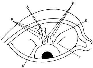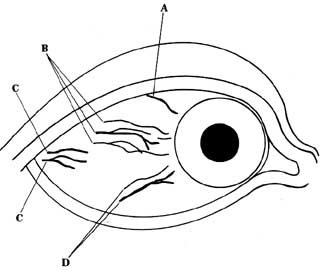 other lines which are in the lower portion of the sclera and usually do not run close to the iris.